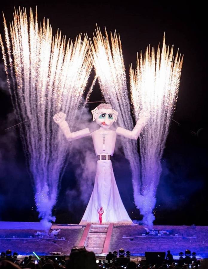 An eerie 50-foot tall marionette, Zozobra embodies the gloom built up through this difficult year, moaning and groaning as he battles his mortal enemy, the Fire Spirit brought to life by the collective goodwill of all who yearn for a better world.