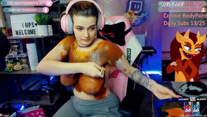 On January 6, 2021, streamer and body painter ‘DelightDaniTV’ hit out at Twitch after receiving a permanent suspension for “inappropriate body art,” which included such offenses as “ females not wearing opaque paint over their chest area” and “wearing a paint and latex combination while streaming content unrelated to body art.”