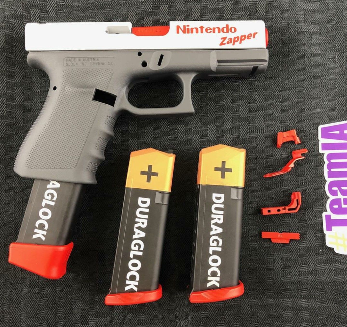 A custom firearms manufacturer in Texas modded up a Glock handgun to resemble a Nintendo Zapper, the light gun that shipped with millions of Nintendo Entertainment Systems in the 1980s.