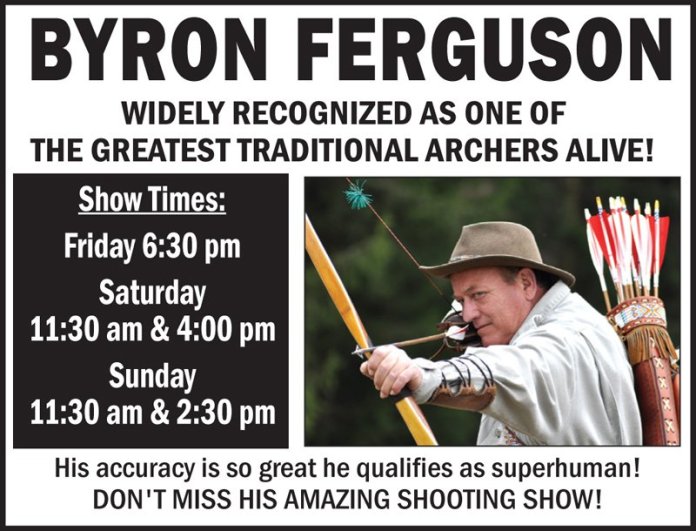Ultimate Air Dog Competition, Hunting Seminars, Field Dressing Demo, Wildgame Cooking Demos, CBM Deer/Elk/Turkey Scoring, Fishing Experts, Chili Cook-Off Contest, Hunting Dog Puppy Tent, Frontier Encampment, Wildgame Food Vendors, Civil War Encampment, Rock Climbing Wall, Kids Archery, Shooting Gallery, etc.