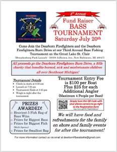 Come and join your Dearborn Firefighter Burn Drive for the 3rd Annual Dearborn Firefighters Burn Drive Bass Battle on Lake St Clair!