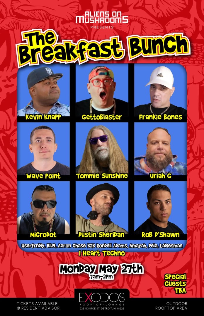 Breakfast beat chefs include Kevin Knapp, Label boss Gettoblaster, Frankie Bones , Tommie Sunshine, Wave Point, Uriah G, Microdot and many more.