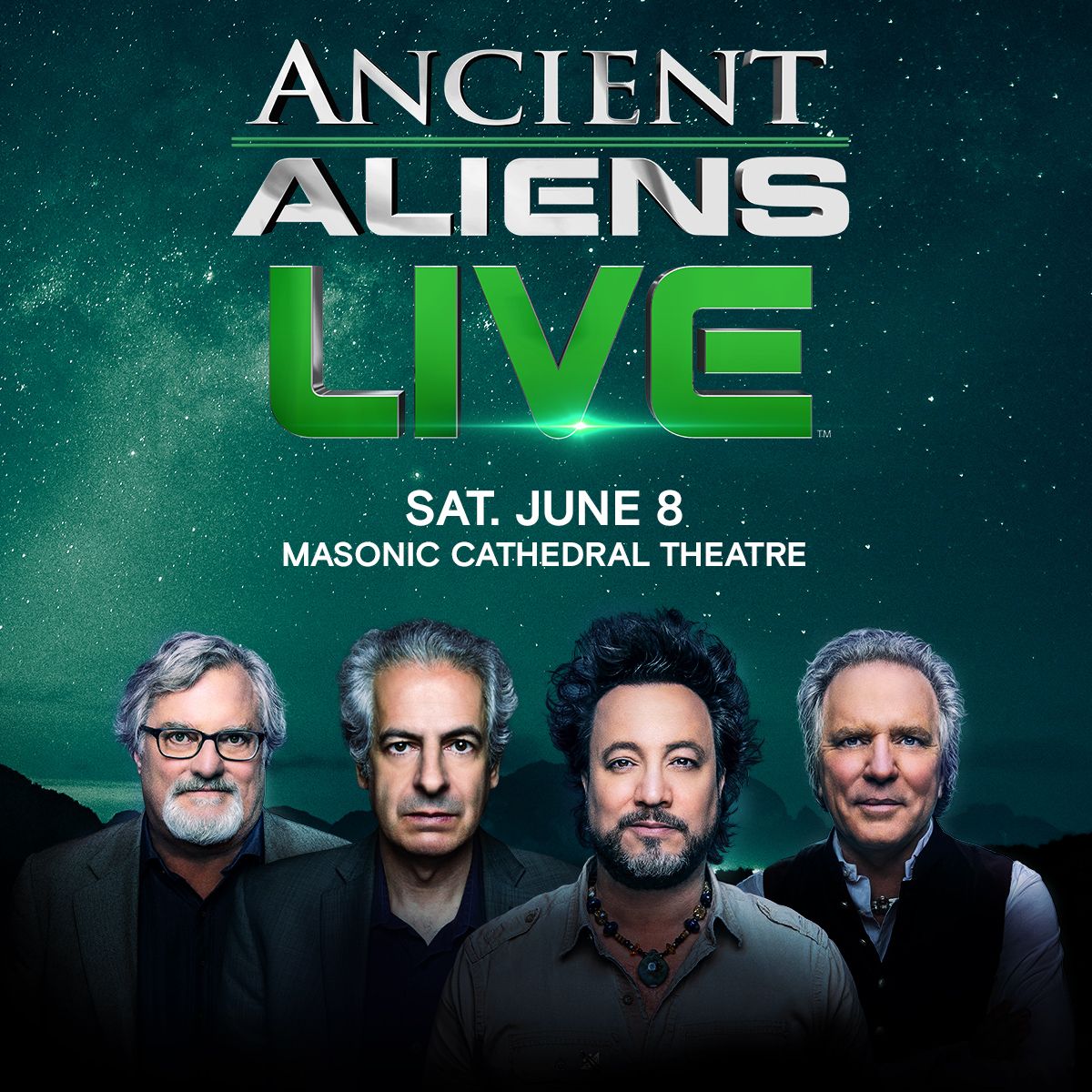 The ninety-minute live experience celebrates the long-running program Ancient Aliens on The HISTORY Channel and features leading Ancient Astronaut theorist Giorgio A. Tsoukalos, investigative mythologist William Henry, UFO investigator Nick Pope, and real-life Indiana Jones, David Childress.