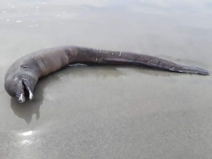 With its dolphin-like head and sharp teeth, but lacking any flippers and having a long snakelike tail, it shocked many people with nobody able to identify it.