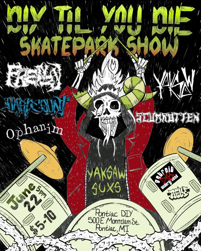 June 22nd there’s going to be a concert at the Pontiac skatepark. It’s going to be a sick show along with some food.