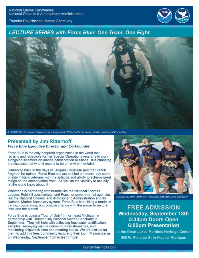 Force Blue is doing a “Tour of Duty” in northeast Michigan in partnership with Thunder Bay National Marine Sanctuary in September.