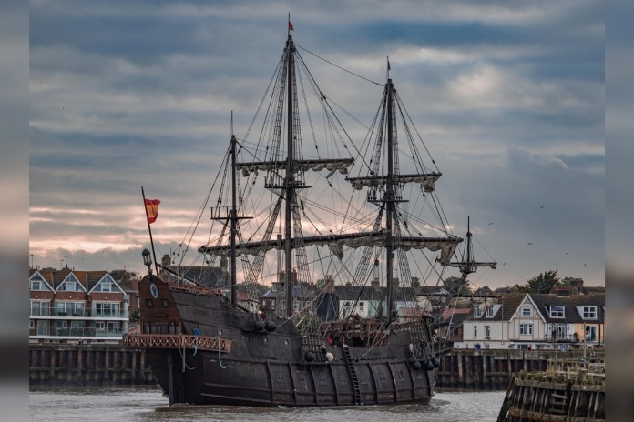 The Galeón Andalucía arrived in Great Yarmouth, Norfolk, England on Tuesday as part of its European tour.