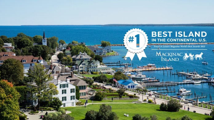 Mackinac Island is revered as a National Historic Landmark, and it’s nestled between Michigan’s upper and lower peninsulas.