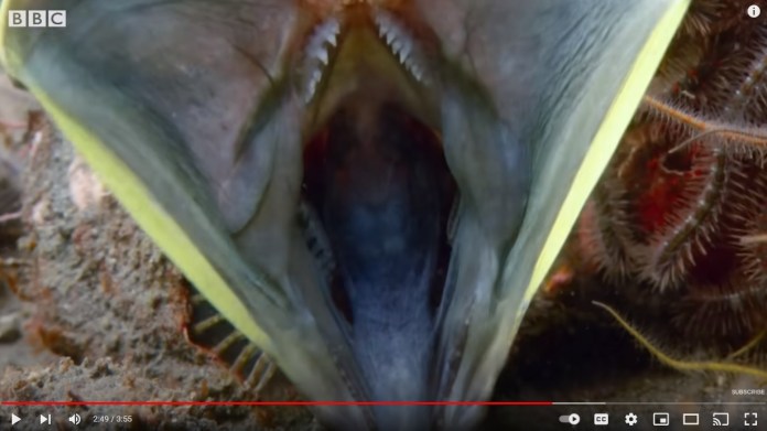 When fighting over territory, the fish try to intimidate their opponents by opening their jaws wide to display the bright colors inside. “The mouth’s intimidating coloration, combined with the extreme nature of its size (which may be as much as four times its closed size) allows the larger male to establish dominance over the smaller,” according to the conservation organization Oceana.