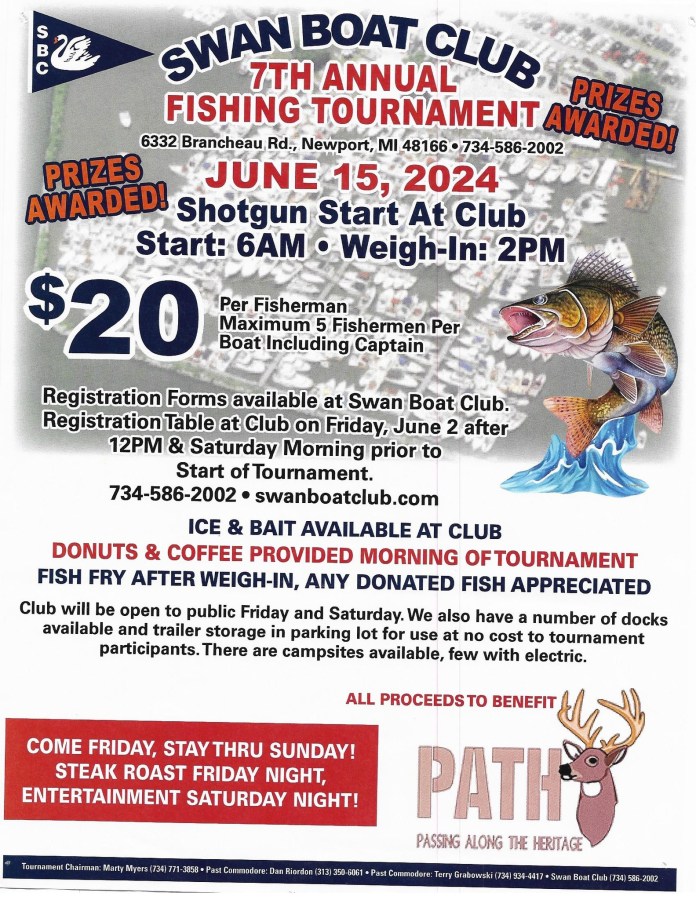 Swan Boat Club down in Newport, Michigan will be doing their annual Fishing Tournament.