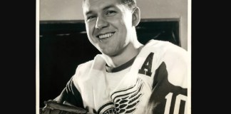 Detroit Red Wings greats Alex Delvecchio & Larry Murphy signing autographs...