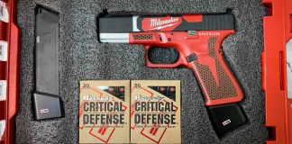Milwaukee Tools Themed Glock 23 Cerakoted using Satin Aluminum, Armor Black...